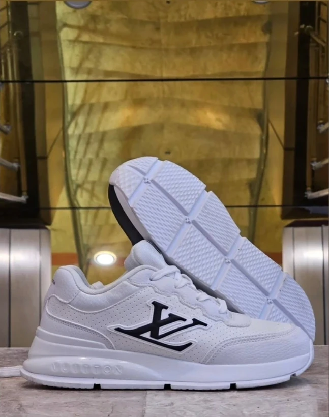 رویهی کفش از جنس چرم طبیعی و پارچه تنفسپذیر ساخته شده تا ضمن زیبایی، تهویه مناسبی برای پا فراهم کنه. زیرهی سبک و منعطف این کتونی، از فوم فشرده و مقاوم ساخته شده که هر قدم شما رو نرم و بیصدا میکنه. دوخت تمیز، لوگوی LV روی کناره و زبانهی کفش و جزئیات ظریف طلایی یا نقرهای، حس اصالت و لوکس بودن رو کاملاً منتقل میکنه.